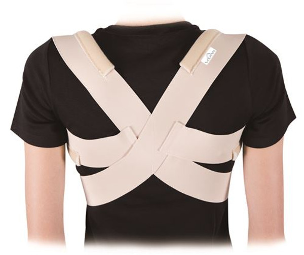 This Thoracic Posture Brace is a comfortable and easy to wear back brace designed to correct poor posture and shoulder slump; Alleviate clavicle fractures.